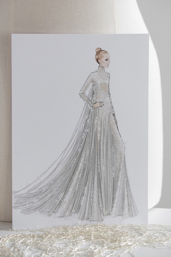 From the second floor of the Eiffel Tower – majestically crowned by the Olympic rings – a monument reflecting all the magic of Paris, she delivered a moving performance dressed in a white silk georgette gown, embroidered with a hypnotic palette of sequins (pierced sparkles) and magnified by over 500 meters of fringing studded with thousands of silver beads, seeming to come alive, vibrating and scintillating to the rhythm of her enchanting performance. An exceptional model, entirely made-to-measure, on the star’s body, with the utmost meticulousness, requiring over a thousand hours of work, and perpetuating the prodigious embroidery savoir-faire of the House of Dior.