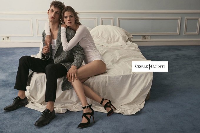 The new Cesare Paciotti advertising campaign relaunches the expressive code of the brand DNA with a contemporary aesthetics that flirts with the intimacy of a young couple. The two protagonists Mathilde Brandi e David Trulik are portrayed in a half-empty Parisian flat where sensual and intimate normalcy and a languor of occasional and sweet, almost fleeting romance take centre stage.