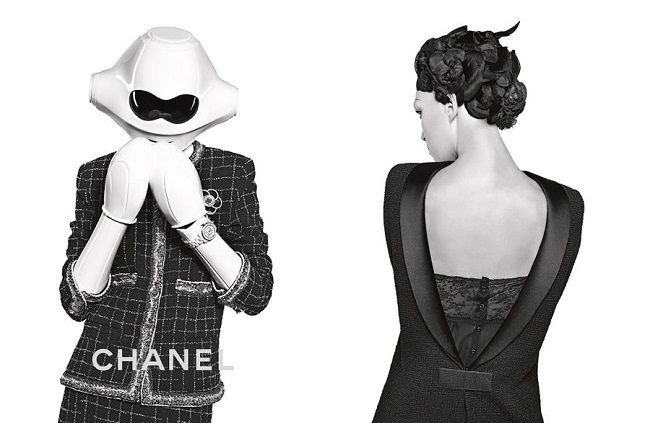 Una donna robotica che rivisita il più classico dei tailleur in tweed a suggestioni spaziali: è l’avvento dell’era digitale ad aver ispirato a Lagerfeld la nuova collezione, ed ora la nuova campagna pubblicitaria. Arizona Muse, classe 1988, interpreta con brio ed ironia il mood della collezione primavera/estate 2017 di Chanel.