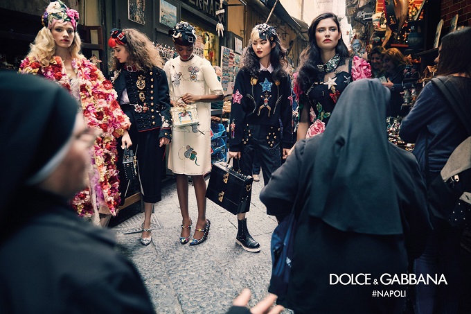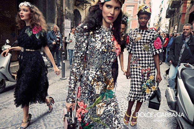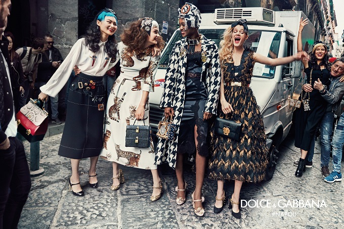 Italian fashion house Dolce & Gabbana revealed their latest Fall Winter 2016.17 advertising campaign captured in Naples by international world reporter Franco Pagetti at VII Photo Agency featuring models Bianca Balti, Cong He, Leila Goldkuhl, Mayowa Nicholas and Sasha Kichigina.