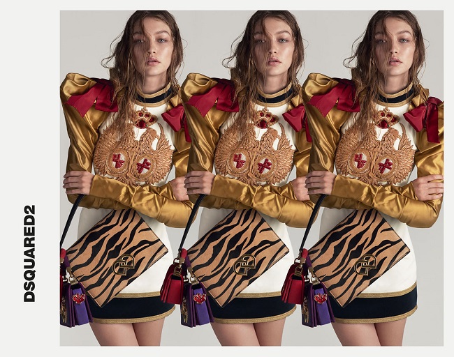 La It-girl Gigi Hadid appare come il volto della collezione primavera-estate 2017 di DSquared2. Fotografata da Mert & Marcus, la ventunenne modella si pone in un collage di immagini con i suoi “doppi”.