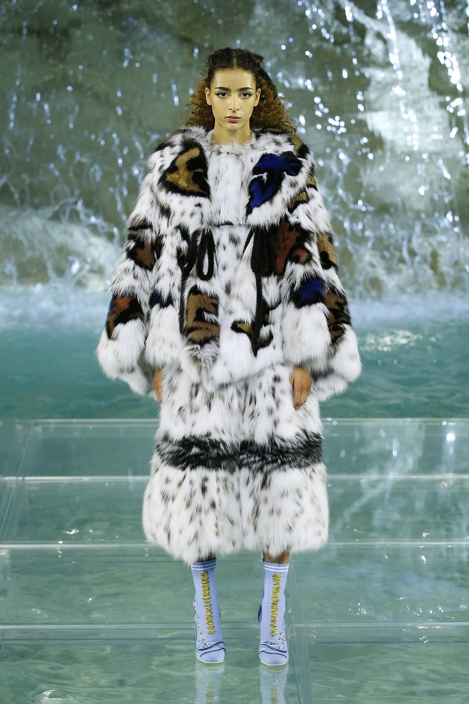 Un universo di fate, principesse, paesaggi incantati, in cui la pelliccia si smaterializza in un gioco di intarsi, citazioni, lavorazioni preziose, realizzati dalle sapienti mani dell’atelier dell’alta pellicceria della maison che questa volta ha scelto la strada di un total look a 360⁰ gradi. Ovvero non più soltanto fourrure monumentali dalle lavorazioni opulente, ma anche abiti, dalla leggerezza estrema perché sono ragnatele di leggerissimo mohair e abiti nuvola ricamati di pelliccia.