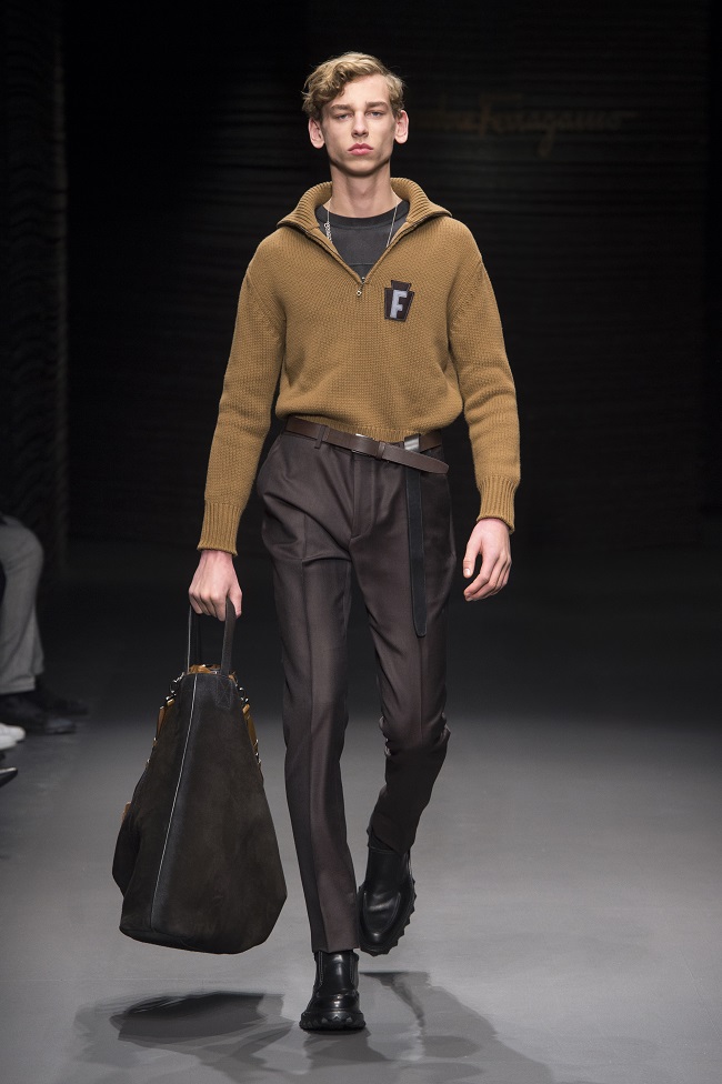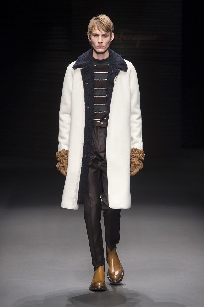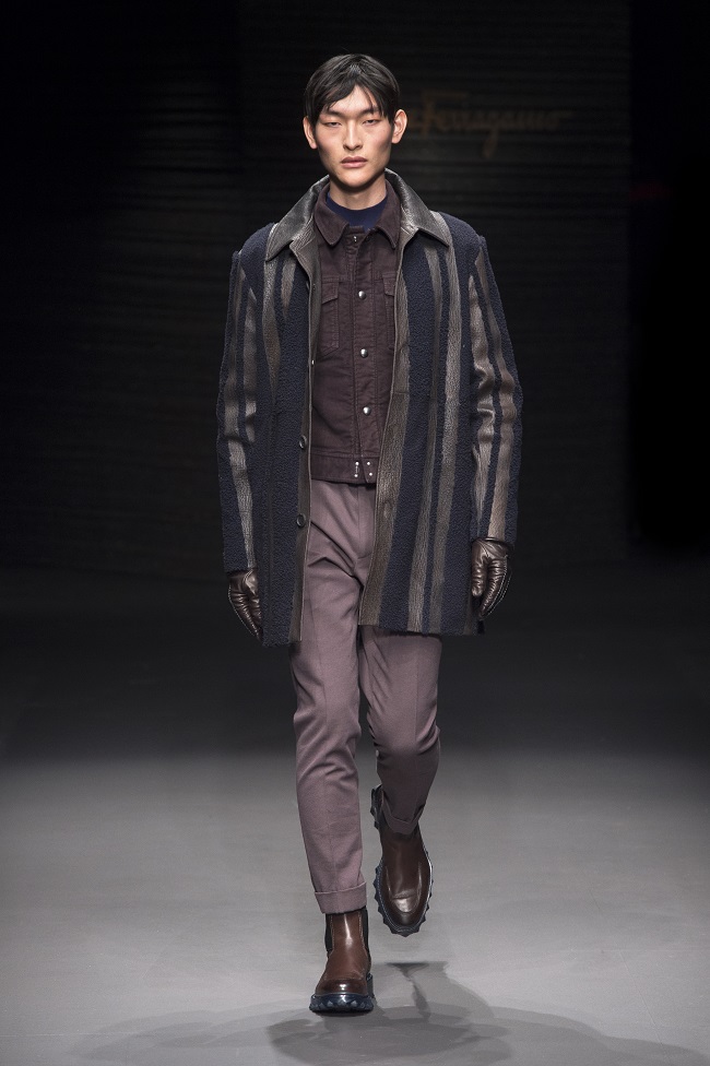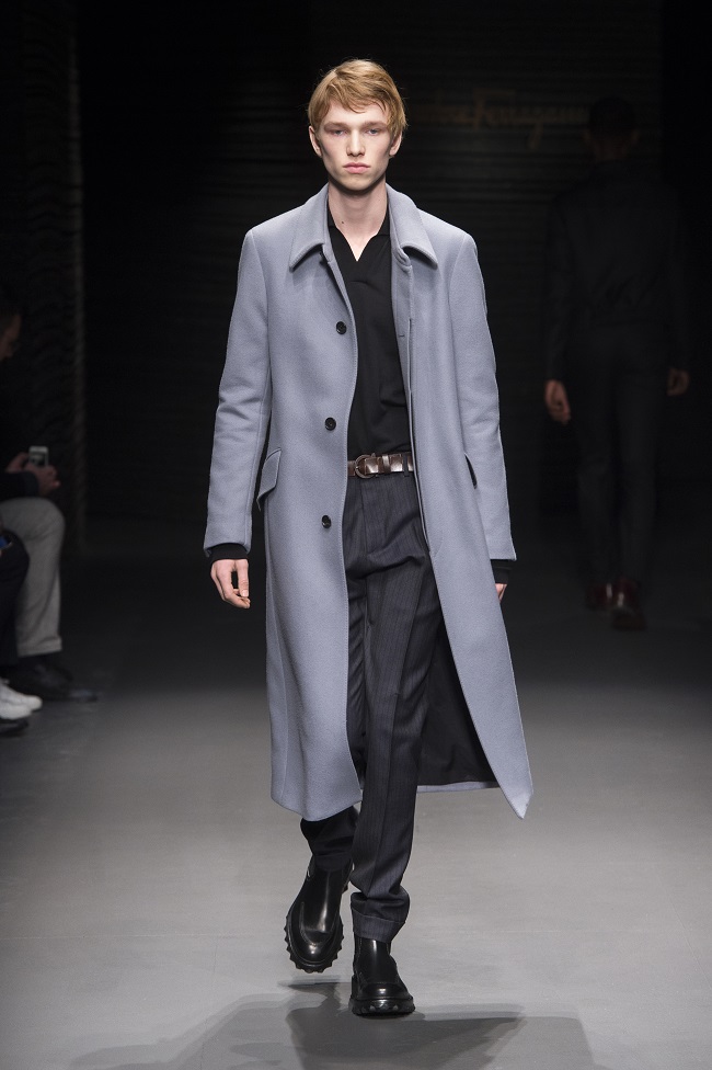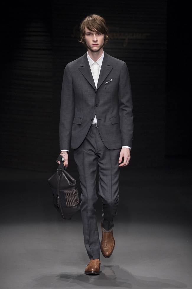 Uomo, classico e deciso. Parte alla grande il nuovo corso del menswear di Salvatore Ferragamo col debutto del nuovo direttore creativo Guillaume Meilland.