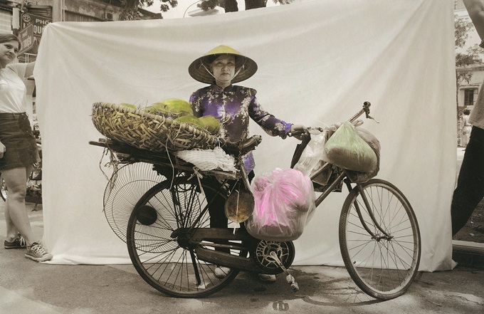 Le immagini dipinte a mano si propongono infine come un omaggio in chiave contemporanea al lavoro del fotografo e viaggiatore italo-britannico Felice Beato, uno dei primi fotografi che si spinsero in Oriente documentando paesaggi, persone e costumi perlopiù ignoti alla maggior parte degli Europei dell’epoca. Così le venditrici ambulanti protagoniste di questa serie si fanno portavoci di una cultura, quella vietnamita, antica e complessa che è stata spesso ignorata o fraintesa dal mondo occidentale nel corso degli anni. Messaggere di un vertiginoso mutamento socio-economico e culturale in atto, queste ‘eroine del quotidiano’ si pongono in linea di continuità con la società matriarcale pre-confuciana e le patriote che hanno segnato la storia leggendaria del paese, in transito perpetuo tra campagna e città, tra tradizione e modernità.