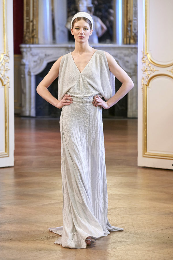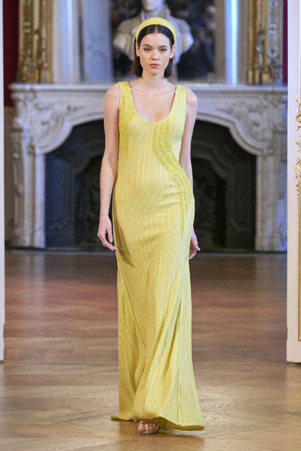 Maria Aristidou SS2020 knit couture collection is, in every respect, inspired by the Art Deco movement of the early 20th century, when the need for change following World War One spread in all aspects of art and design. From buildings to furniture, jewelry, fashion and every day objects.