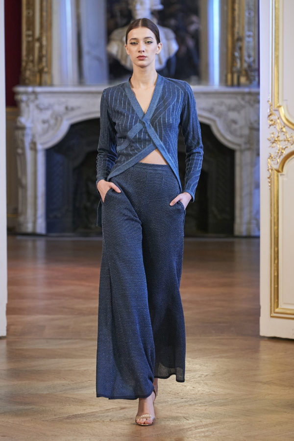 The magic of knitwear inspired the designer to first explore and then create, using luxurious threads and elaborate techniques, various knit patterns.