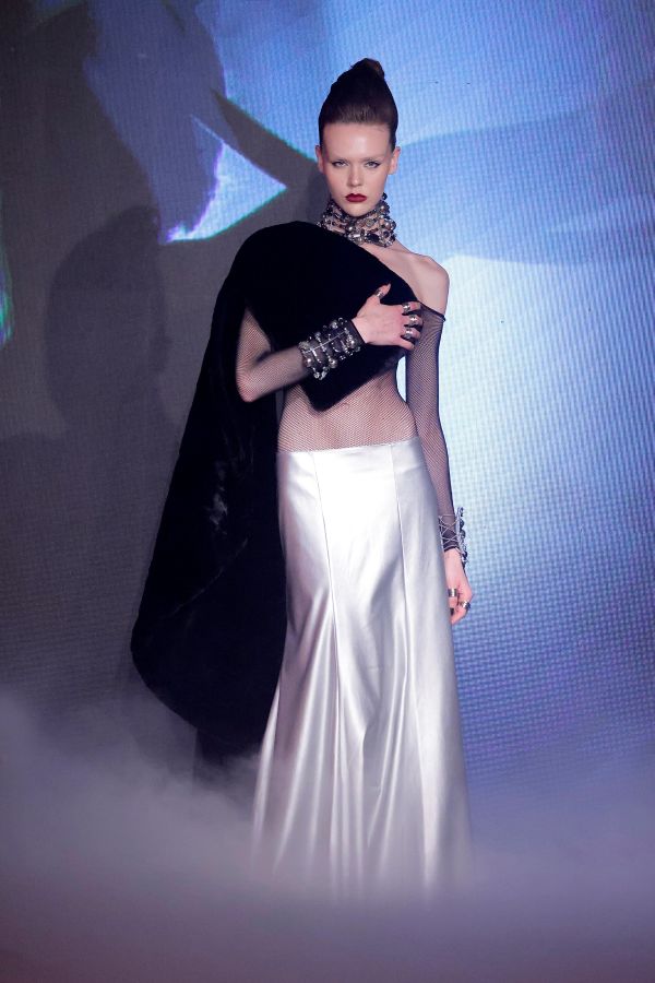 Pignatelli Atelier nasce dal dialogo con l’archivio storico: ogni creazione prende forma da basi sartoriali originali reinterpretate con uno sguardo contemporaneo e internazionale. La collezione alterna costruzioni scultoree e linee fluide, capi couture di forte impatto scenico e pezzi più essenziali ma evocativi, dando voce a una femminilità consapevole e attuale.