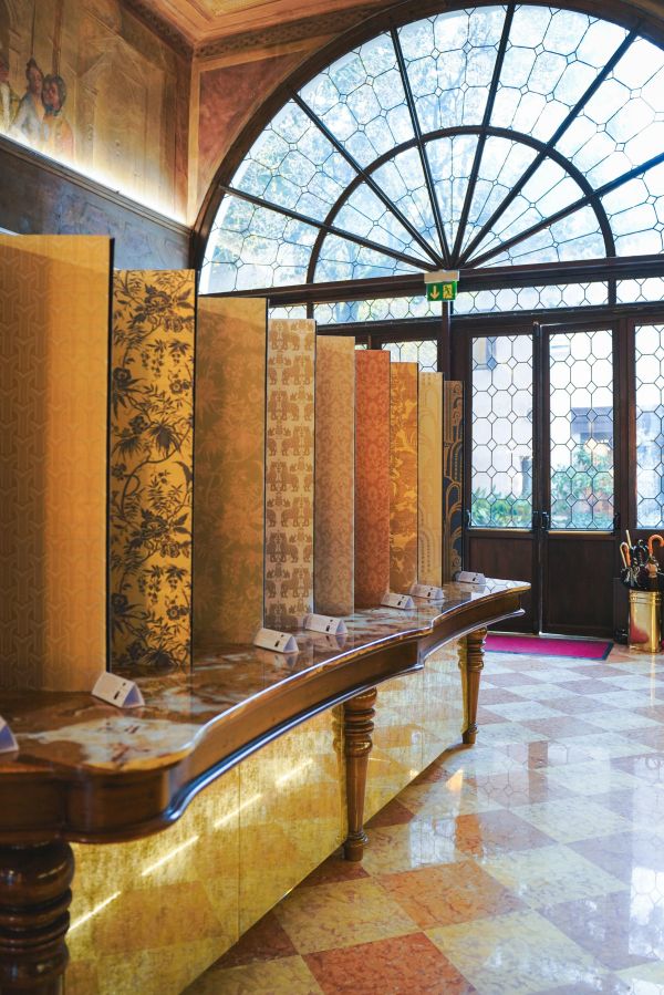 Negli spazi del palazzo viene presentata anche la prima collezione di carte da parati Bevilacqua, illustrate con disegni tratti dall’archivio storico, che custodisce più di 3.500 motivi: dalle Grottesche con sfingi e figure fantastiche ai motivi Rinascimento, dalle Fiere con leopardi custodi dell’albero della vita ai Fioroni barocchi, fino alle linee Paradiso e Fontane & Walls ispirate all’Art Déco.