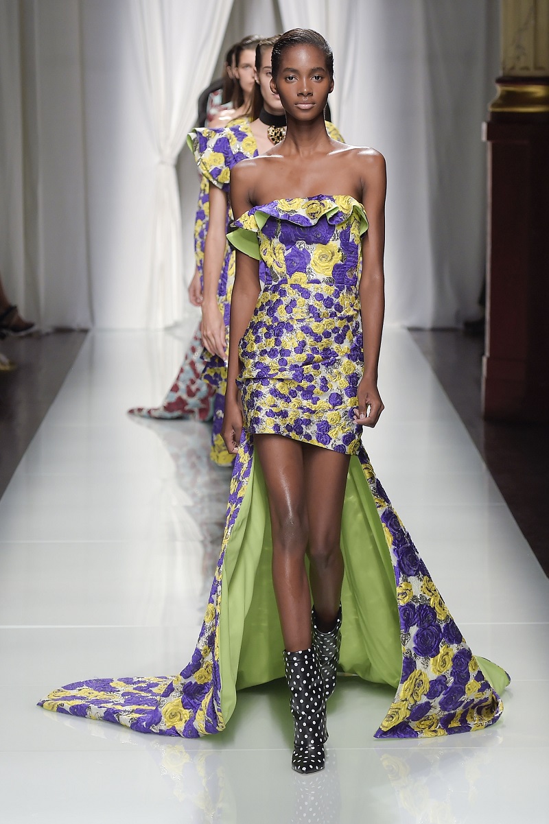 Il finale è un tripudio di jacquard floreali in colori accesi, attinti da stampe di archivio, che suonano come un omaggio alla storia della maison. Puglisi docet.