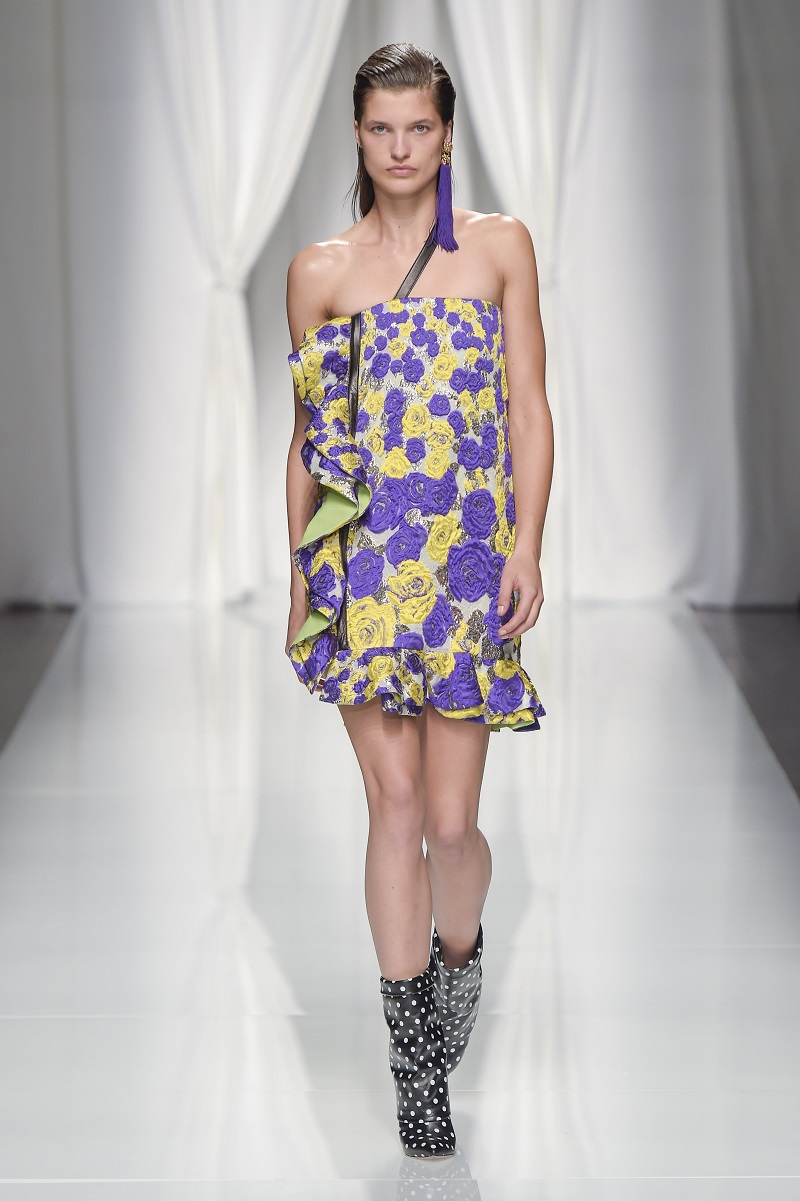 Da tre anni devotissimo nel rileggere i codici della maison Ungaro, Puglisi spiega: “Stavolta mi sono ispirato a una principessa ribelle come Stephanie di Monaco”.