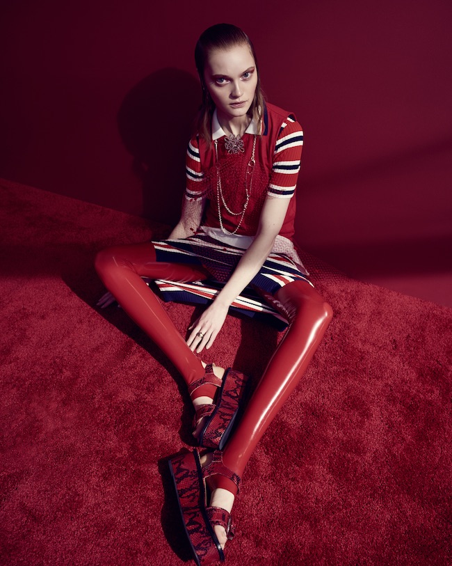 dress: TOMMY HILFIGER x GIGI HADID top: MONCLER stockings: TRES BONJOUR necklace: HERMES earing: POMELLATO shoes: TOGA broche: CHANEL ring: TESSA METCALFE