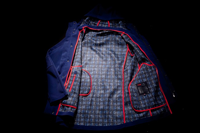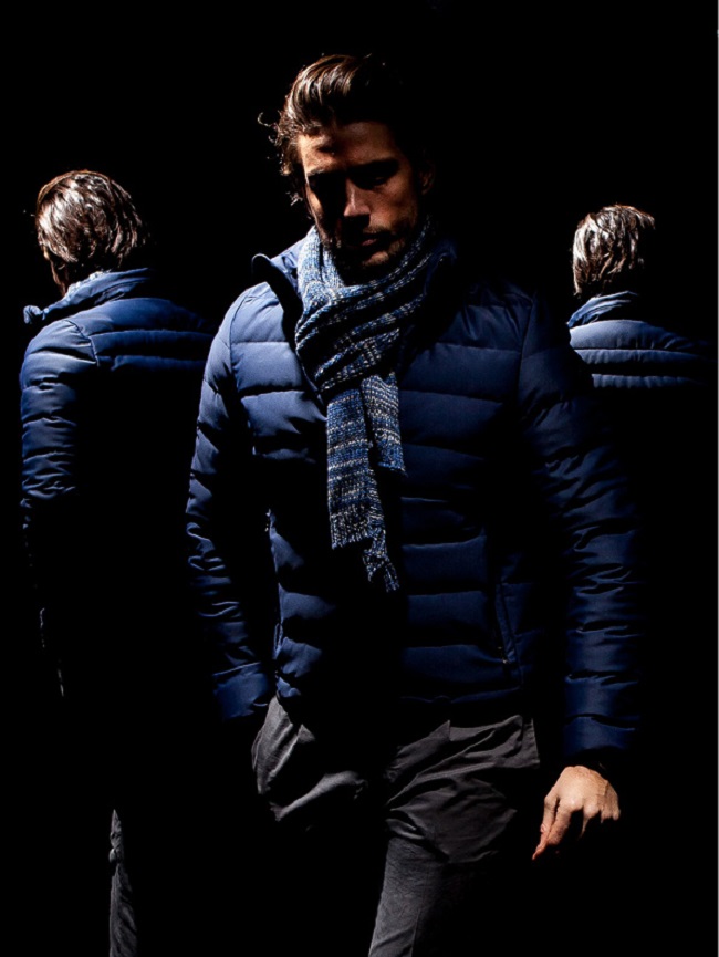 I colori sono quelli della strada, dal nero al grigio asfalto, il blu notte, il sabbia ed il military green. Inaspettata sorpresa sono le stampe rigorosamente disegnate a mano di ispirazione laniera, che caratterizzano sia gli interni delle giacche sia di alcuni piumini con tocchi di rosso rh+, blu royal e verde acido.